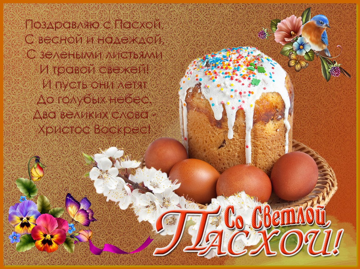 16апреля2017Разукрашен кулич в конфетти, Яйца блещут яркою краской, Поздравление в праздник прими, С благодатною, радостной Пасхой, Пожелаю здоровья тебе, Внимания, тепла, процветания, Без грехов жить на этой земле, Исполнения любого желания!