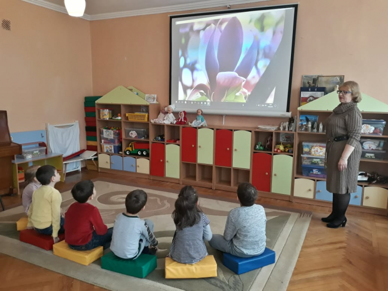 А теперь закройте глаза и мы свами вновь в детском саду. Вам понравилось занятие? Что мы делали? Как занимались? До свидания.